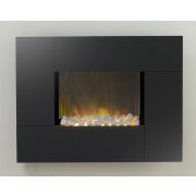 Adam Alexis Wall Mounted Electric Fire in Black Glass, 18 Inch, Pebble Bed