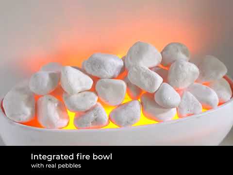Our top selling Sureflame Mondrian Fireplace Suite is a modern fire in every sense of the word. The eye-catching, hollowed out cube holds an electric fire that simmers gently in a bowl of white pebbles. The straight, white lines of the surround have a decidedly minimalist allure, and combine with the pure, satin white colour and delicately glowing embers to lend your home an attractive, contemporary quality.